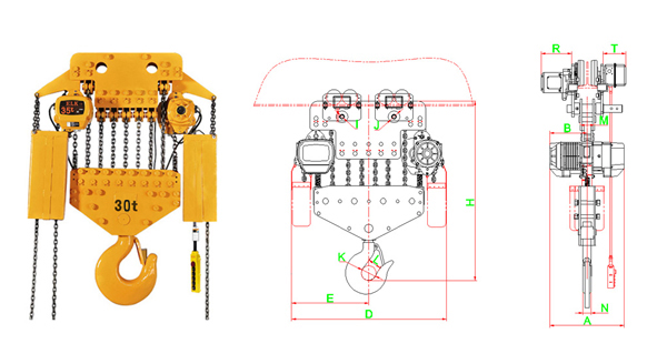 30T固定式環(huán)鏈電動(dòng)葫蘆技術(shù)參數: