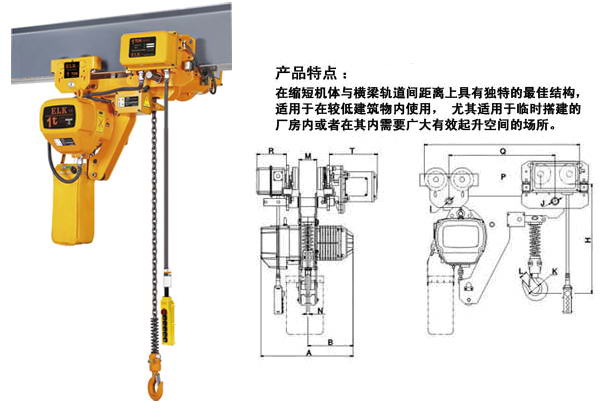 在縮短機體與橫梁軌道間距離上具有獨特的最佳結構,適用于在較低建筑物內使用,尤其適用于臨時(shí)搭建的廠(chǎng)房?jì)然蛘咴谄鋬刃枰獢U大有效起升空間的場(chǎng)所。